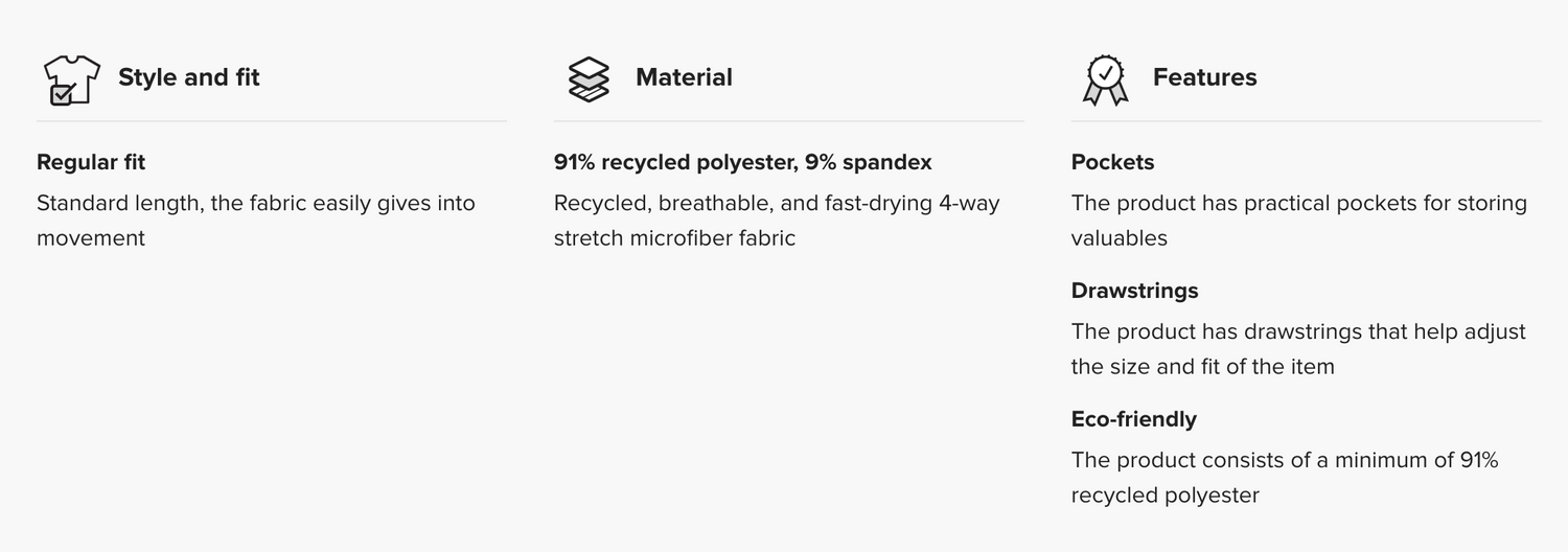 91% Recycled Polyester, 9% spandex